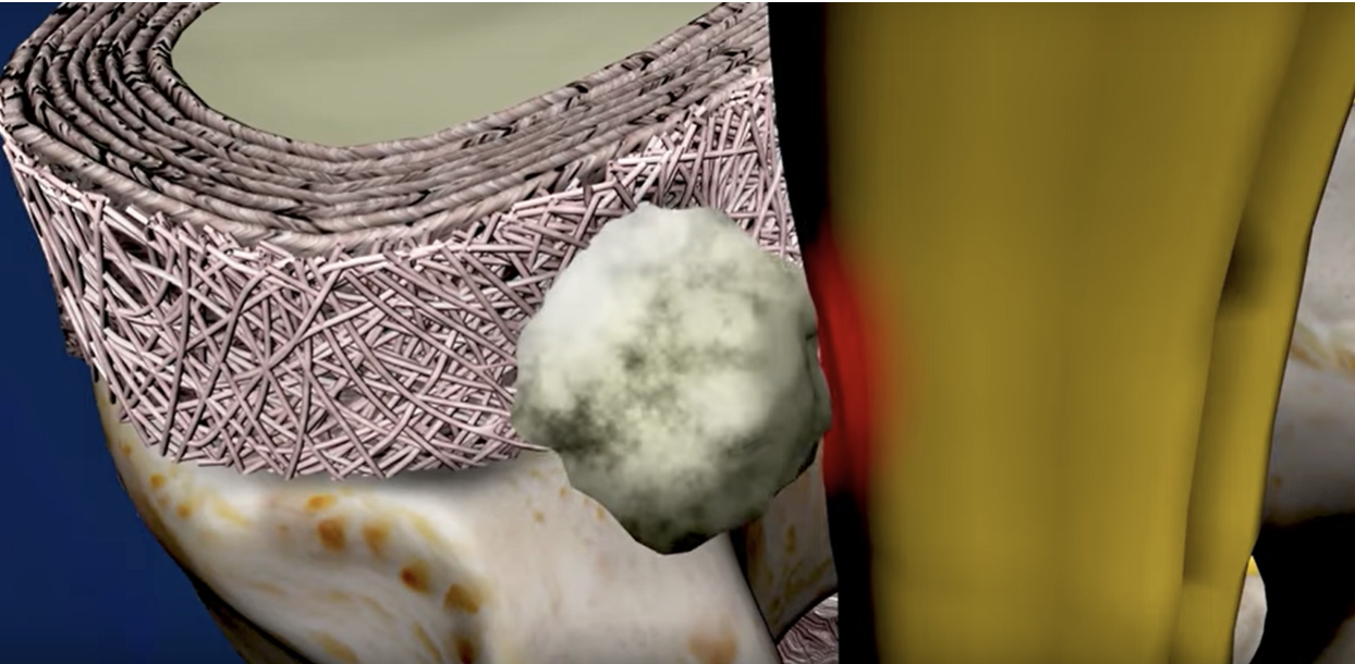 Imagine your disc like a jelly donut. When it’s herniated, the jelly, aka the inner nucleus, has squeezed out through the outer layer. Once that “jelly” is out, it floats around irritating the surrounding tissues. But here’s the good news: your body will eventually absorb it.